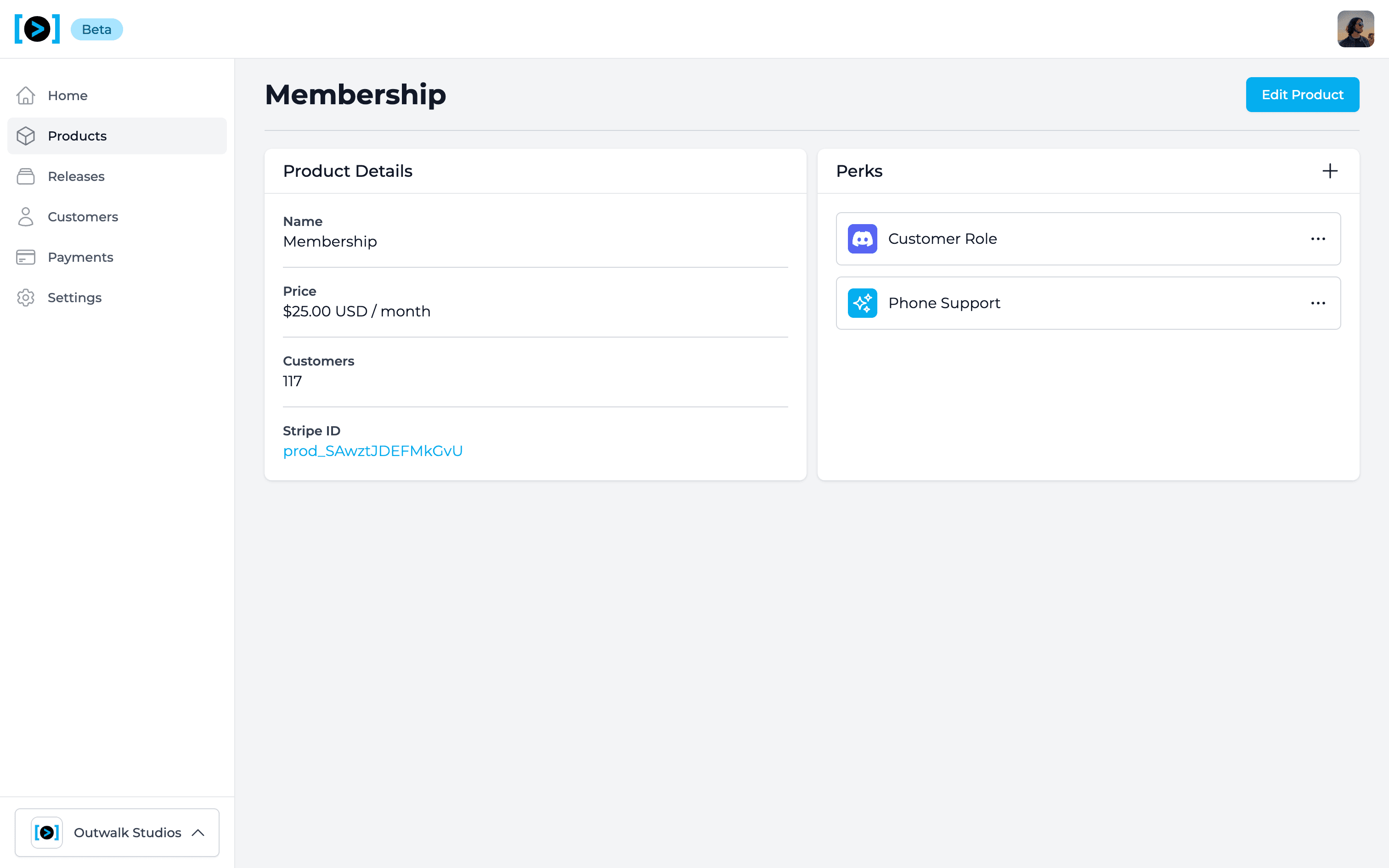 Create a product, add perks, set pricing, and define exactly what you're offering.